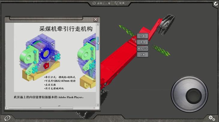 本系统涵盖了煤矿采煤机、掘进机、提升机、液压支架、运输车辆、主运皮带、压风机、主通风系统等煤矿通用设备,通过该系统,用户可以十分清晰的了解这些设备的结构原理,可虚拟的对设备进行组装调试,能够对设备的故障进行模拟演示和排查,能够利用交互工具对设备进行操作。